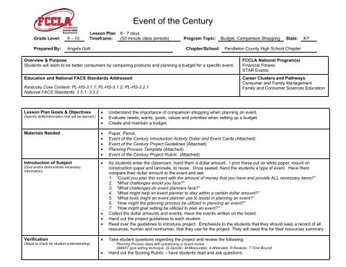 Event Of The Century Lesson Plan Fccla