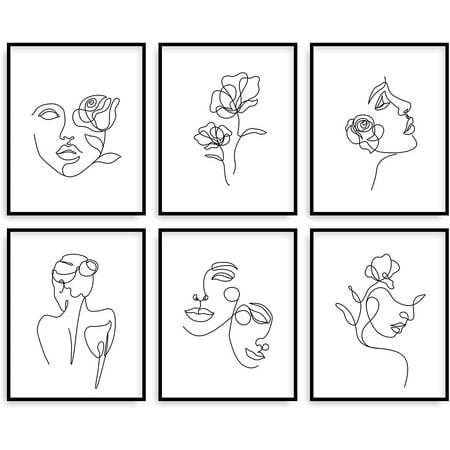 6 Pack Minimalist Line Art Prints 8 X 10 Inch Abstract Single Line Wall Art Poster Waterproof Black White Female Face Flower Aesthetic Drawing Paintings For Bedroom Living Room College Dorm Walmart Canada