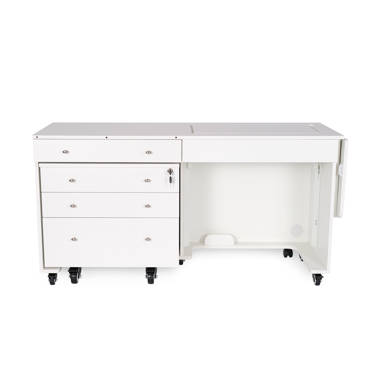 Amazon Com Arrow Sewing Cabinet 611 Gidget Ii Folding Sewing Cutting Quilting And Craft Table Portable With Wheels And Lift White Finish Arrow Companies Llc Arts Crafts Sewing